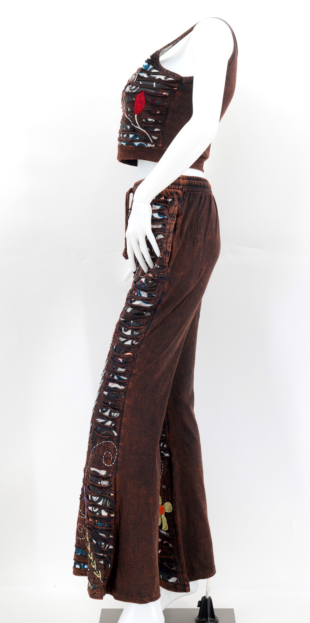 Every clothing item is meticulously handmade, reflecting the care and consideration put into their creation, resulting in unmatched quality. Because our products are handmade, the patchwork colors and patterns on each pair of trousers and tops may vary, making each one unique. The provided image serves as a general representation of the product's appearance.