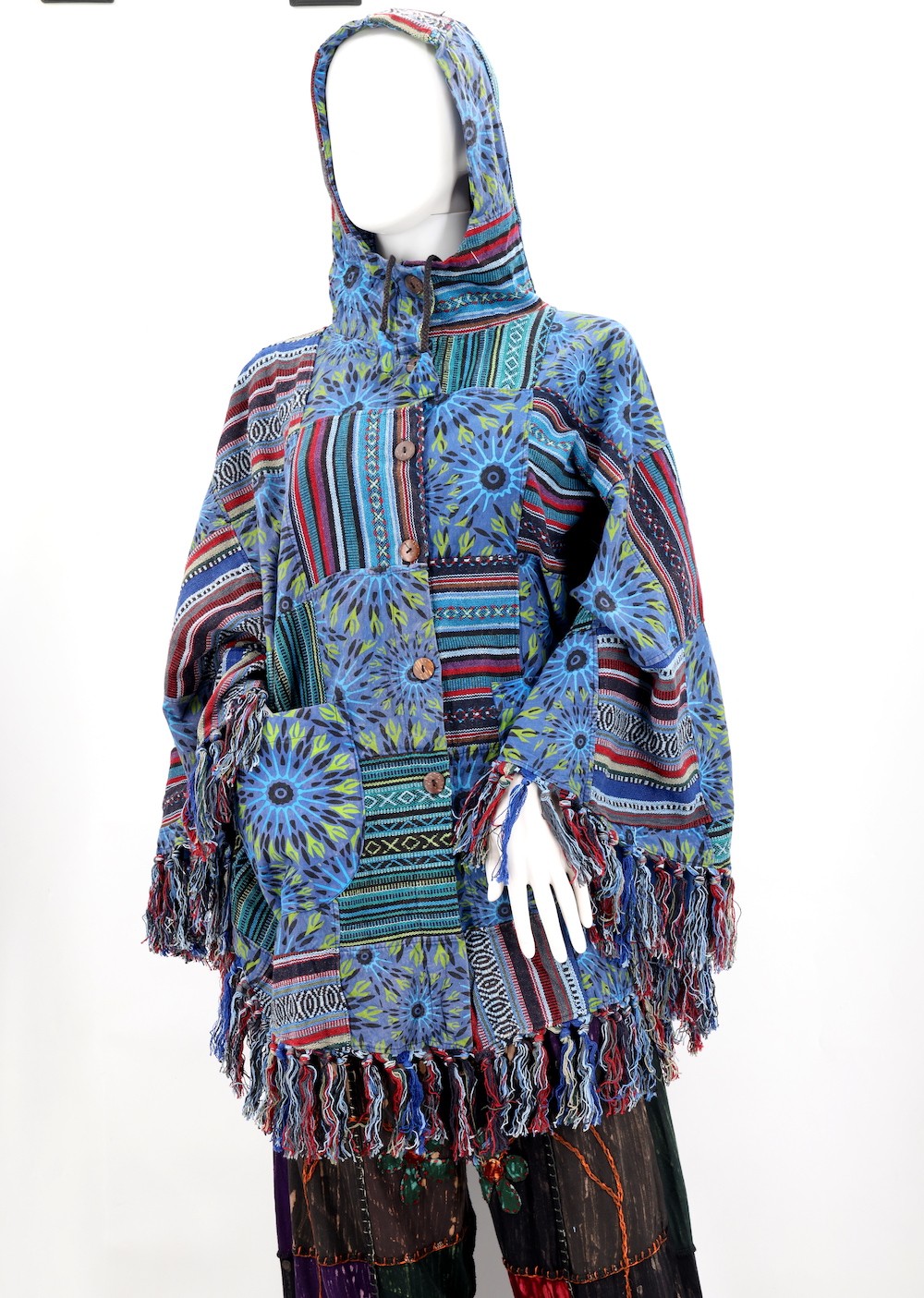 These Unique Hippie Geometric Patterned Gheri Patchwork Ponchos are crafted from the finest 100% Natural Handwoven Cotton by some of the most skilled artisans. Elevate your style instantly with these extraordinary and highly fashionable ponchos that are suitable for almost any occasion, ensuring you look your best every time.