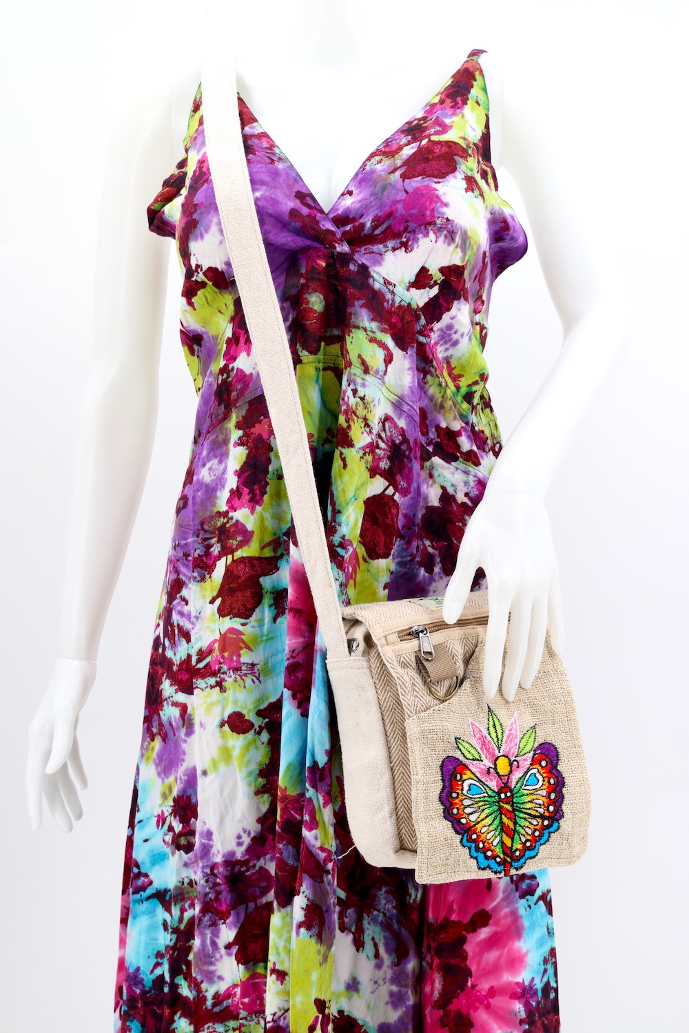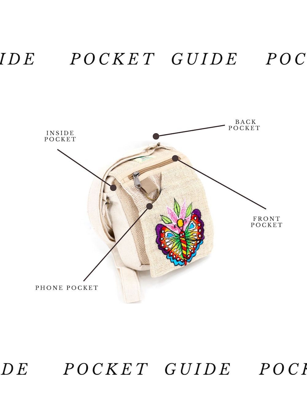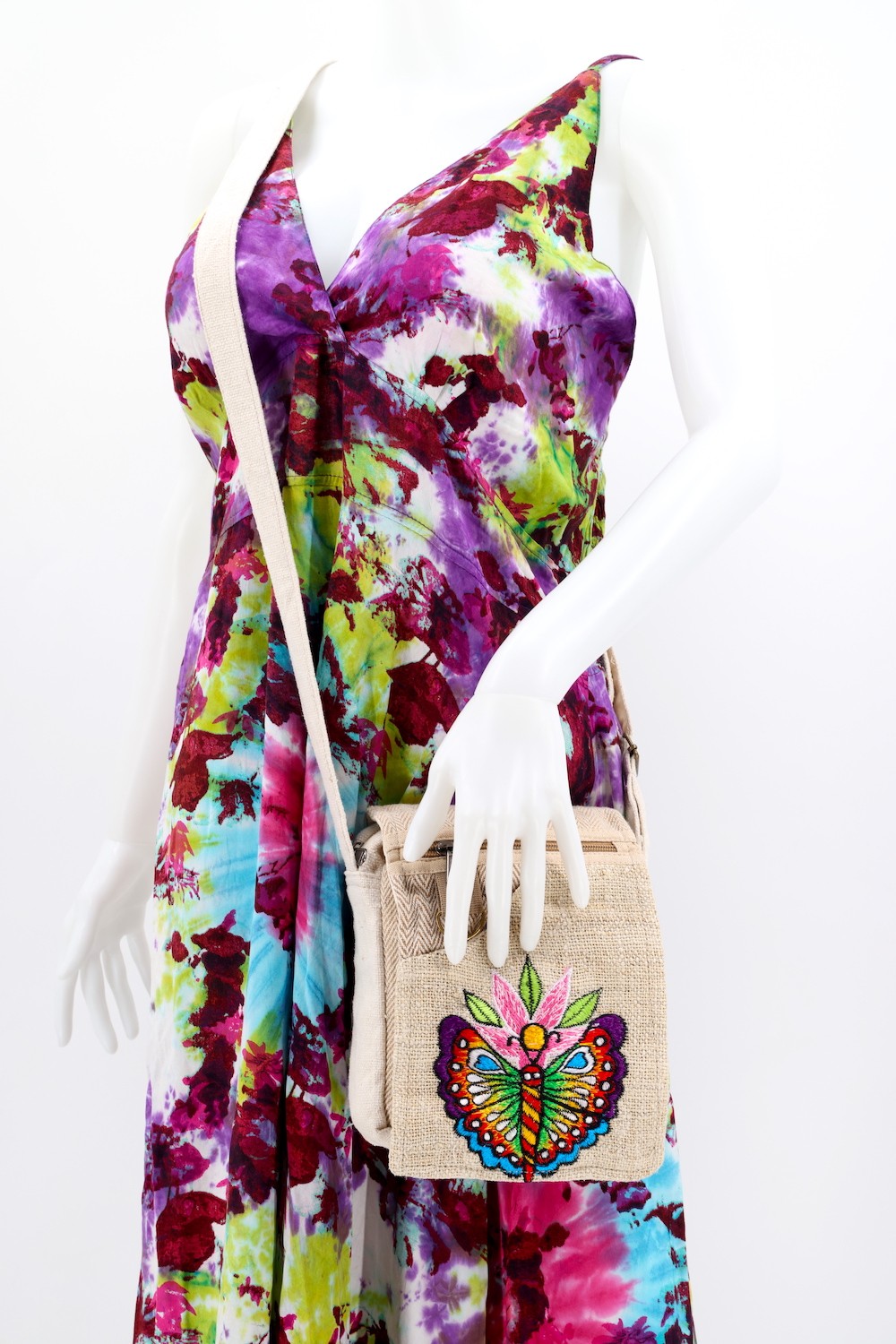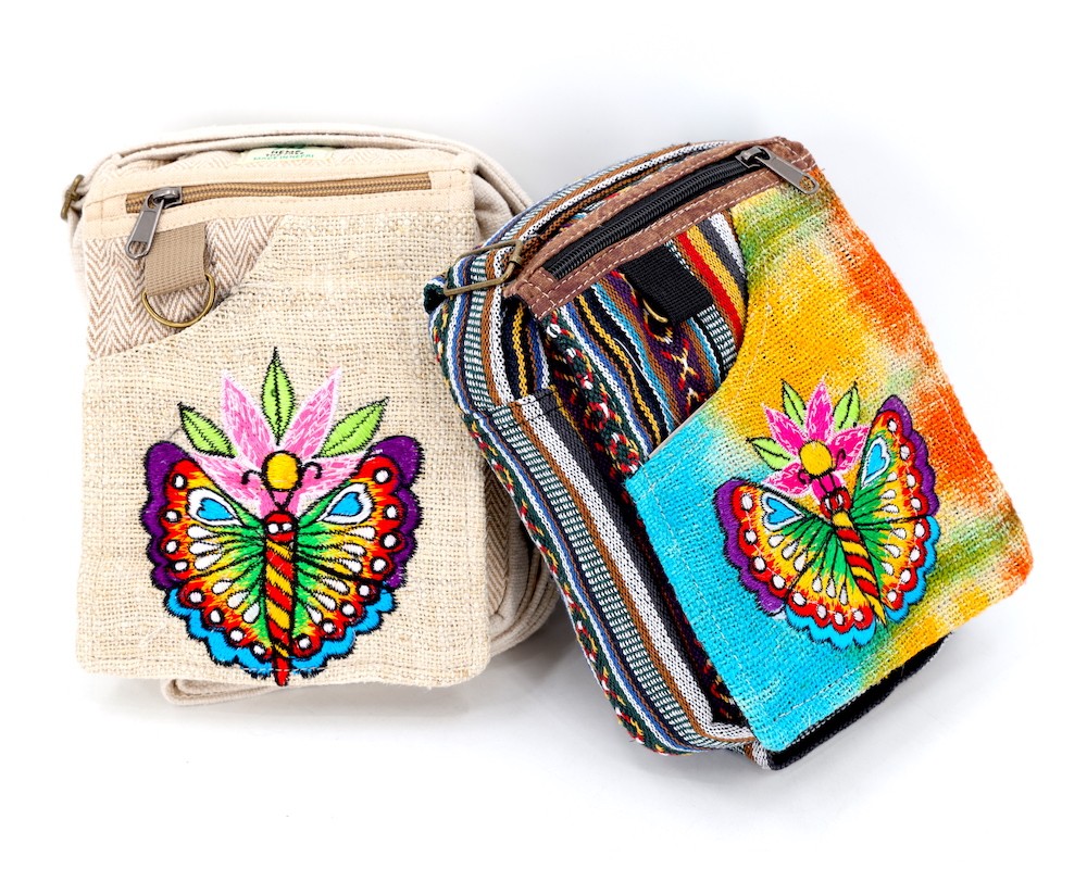 A versatile and beautiful Butterfly hand embroidery 100% Natural THC Free Himalaya Hemp Fabric stitched by talented artisans in Himalaya Range of Nepal. Support underprivileged Nepalese communities with your purchase. Hand wash or Machine wash separately in cold water.