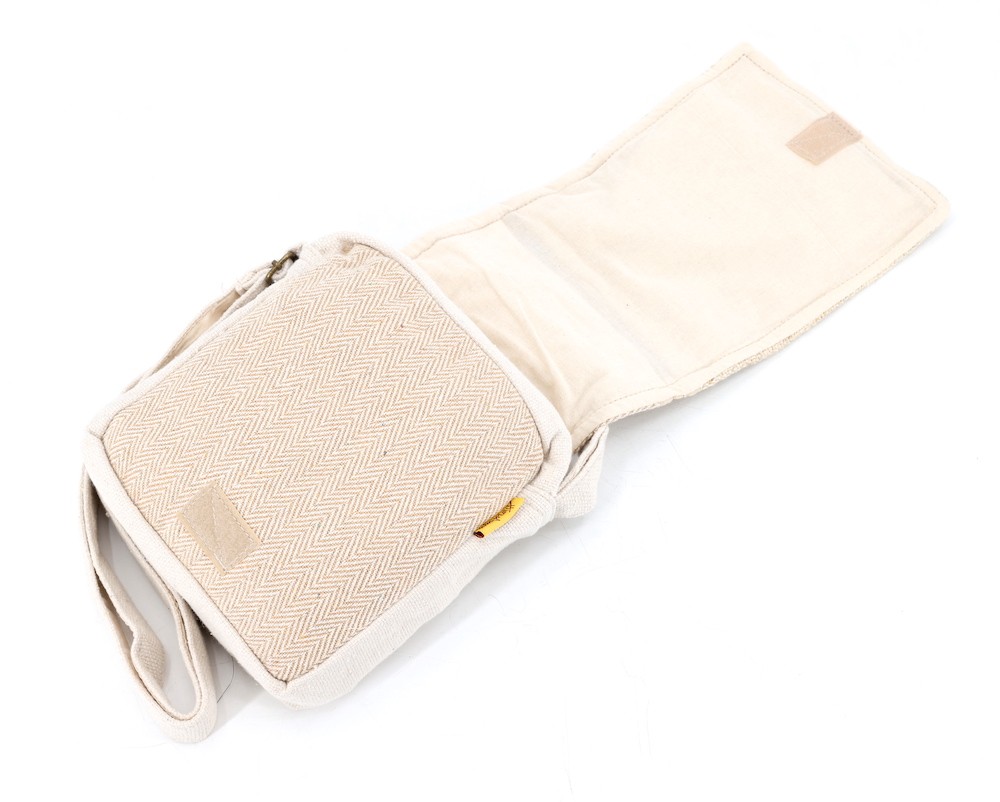 The beautiful hemp Travel bag is hand made in Nepal with pure 100% organic Himalaya hemp. This modern hemp passport bag is supremely versatile and fashionable. This bag features are it has two compartments with zippers and it has adjustable strap with outside two pockets in the front and in the main pocket above with a zipper. It is a fair trade made product.
