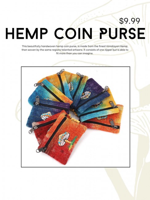 This beautifully handwoven hemp coin purse, is made from the finest Himalayan Hemp, then woven by the same regions talented artisans. It consists of one zipper but is able to fit more than you can imagine.