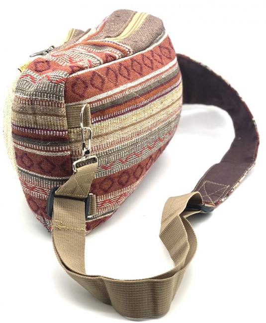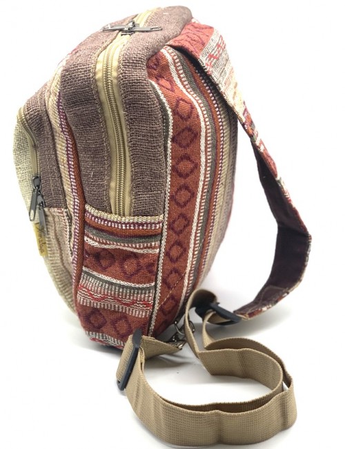• At Himalaya Handmade we are known for creating the modern Mini Sling hemp backpacks that are now available in profusion of design and colors. Our Mini backpack with multicolor Aztec pattern is made from eco-friendly natural hand-woven hemp and cotton fabric and it is beautifully handcrafted in Nepal, they are high quality and this backpack has everything you need. You will not find higher quality anywhere else. All of our bags are sourced from the mountainous regions of Nepal and are all 100% Handmade. This backpack features are it has a unique multi colored pocket. Handcrafted this Backpack Includes, tablet compartment – fits up to large tablet, 3 separate compartments with 2 pockets being zippered, extremely strong construction, strong original two metal zippers on main compartment, soft padded straps and made from 100% Hemp, the entire bag is extremely strong but also breathable. Color of these bag will not be exact because arrangement of the pattern and these bags are handmade so in color can be slightly different. The image for display is just one of many designs that are available. Every bag is handmade and therefore unique.