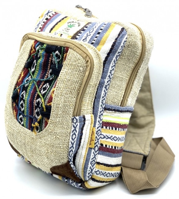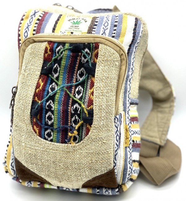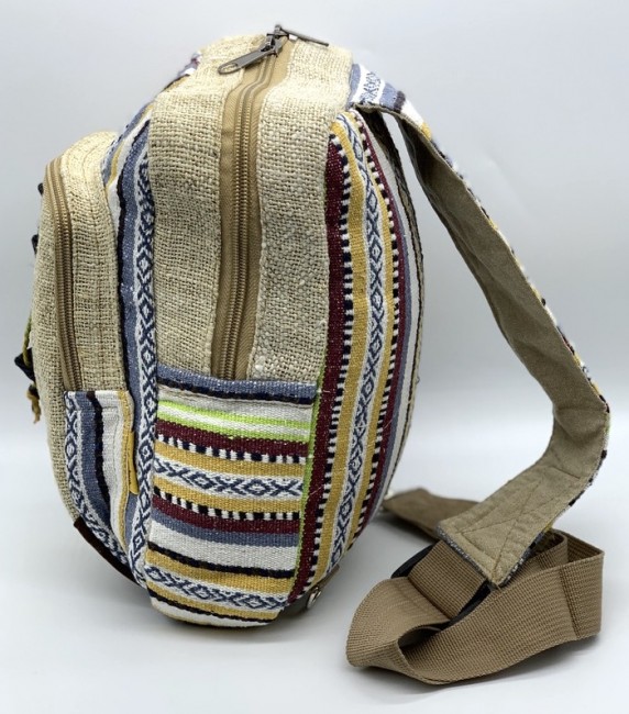At Himalaya Handmade we are known for creating the modern single strap mini Sling hemp backpacks that are now available in profusion of design and colors. Our Mini backpack with multicolor Aztec pattern is made from eco-friendly natural hand-woven hemp and cotton fabric and it is beautifully handcrafted in Nepal, they are high quality and this backpack has everything you need. You will not find higher quality anywhere else. All of our bags are sourced from the mountainous regions of Nepal and are all 100% Handmade. This backpack features are it has a unique multi colored pocket. Handcrafted this Backpack Includes, tablet compartment – fits up to large tablet, 3 separate compartments with 2 pockets being zippered, extremely strong construction, strong original two metal zippers on main compartment, soft padded straps and made from 100% Hemp, the entire bag is extremely strong but also breathable. Color of these bag will not be exact because arrangement of the pattern and these bags are handmade so in color can be slightly different. The image for display is just one of many designs that are available. Every bag is handmade and therefore unique.