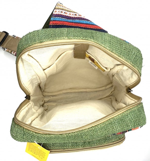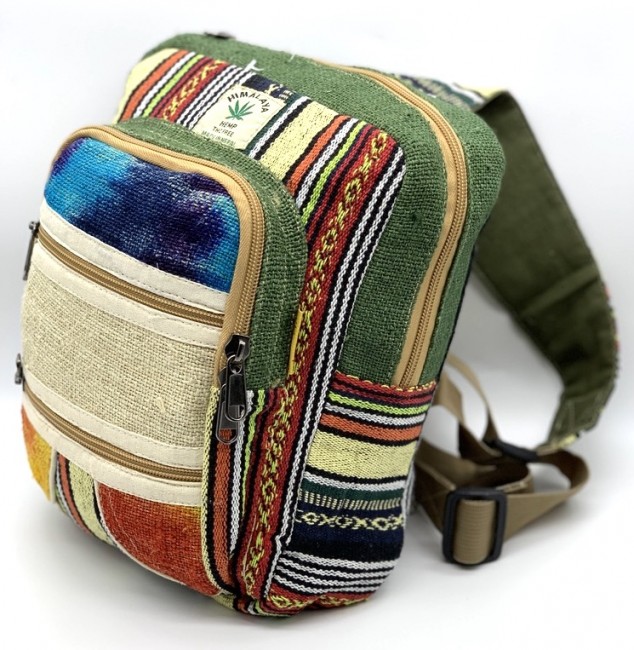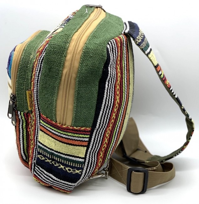 At Himalaya Handmade we are known for creating the modern single strap mini Sling hemp backpacks that are now available in profusion of design and colors. Our Mini backpack with multicolor Aztec pattern is made from eco-friendly natural hand-woven hemp and cotton fabric and it is beautifully handcrafted in Nepal, they are high quality and this backpack has everything you need. You will not find higher quality anywhere else. All of our bags are sourced from the mountainous regions of Nepal and are all 100% Handmade. This backpack features are it has a unique multi colored pocket. Handcrafted this Backpack Includes, tablet compartment – fits up to large tablet, 3 separate compartments with 2 pockets being zippered, extremely strong construction, strong original two metal zippers on main compartment, soft padded straps and made from 100% Hemp, the entire bag is extremely strong but also breathable. Color of these bag will not be exact because arrangement of the pattern and these bags are handmade so in color can be slightly different. The image for display is just one of many designs that are available. Every bag is handmade and therefore unique.