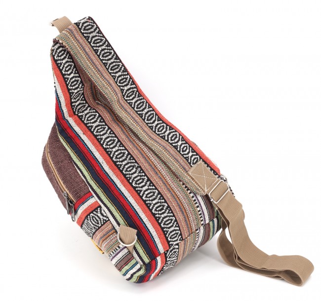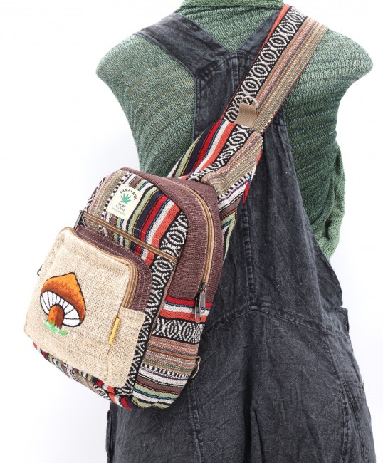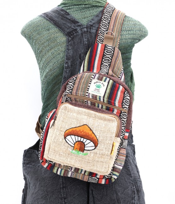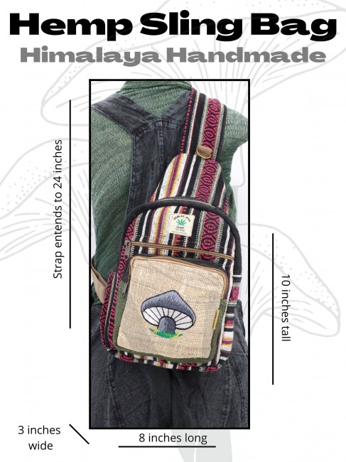 This Himalaya Hemp sling bag crossbody backpack is the perfect replacement for a traditional fanny pack. With the Adjustable strap, this sling bag fits all body types and can be worn over the shoulder across the chest or back. This sling bag features 2 front zipper compartments, 1 inner zipper compartment & inner padding for added safety. The Himalaya Hemp material makes this sling bag very durable with an added urban/sporty appeal.