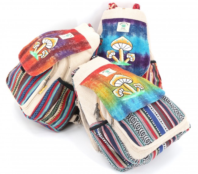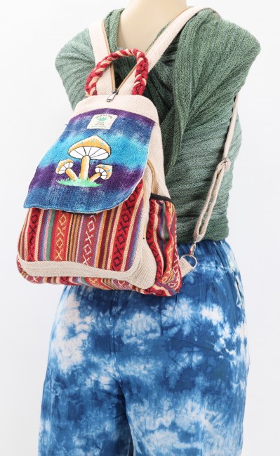 • At Himalaya Handmade we are known for creating the modern Mini hemp backpacks that are now available in a vast array of design and colors. Our Mini backpack with multicolor Aztec pattern which is made from eco-friendly natural hand-woven hemp and cotton fabric which is beautifully handcrafted in Nepal, they are of high quality and our backpacks have everything that you will need. You will not find products of higher quality anywhere else. All of our bags are sourced from the mountainous regions of Nepal and are all 100% Handmade. This backpack features are it has a unique multi colored pocket. Handcrafted this uniquely versatile Backpack comes with 2 pockets on the front both zippered and secured with a Velcro, the larger front pocket also has a zippered anti-theft pocket as well as compartment that can be used to store objects as large as 12 inches, There is also a secret back pocket which is zippered and can be used to contains various items, the bag also comes equipped with 2 water bottle holders. The bag has extremely strong construction, it has strong original two metal zippers on main compartment, soft padded straps and made from 100% Hemp, the entire bag is extremely strong but also breathable. Color of these bag will not be exact because arrangement of the pattern and the nature of these bags being handmade can cause the colors and patterns to be slightly different. Images for this bag are an overall example to what the bag looks like. Every bag is handmade and therefore unique.