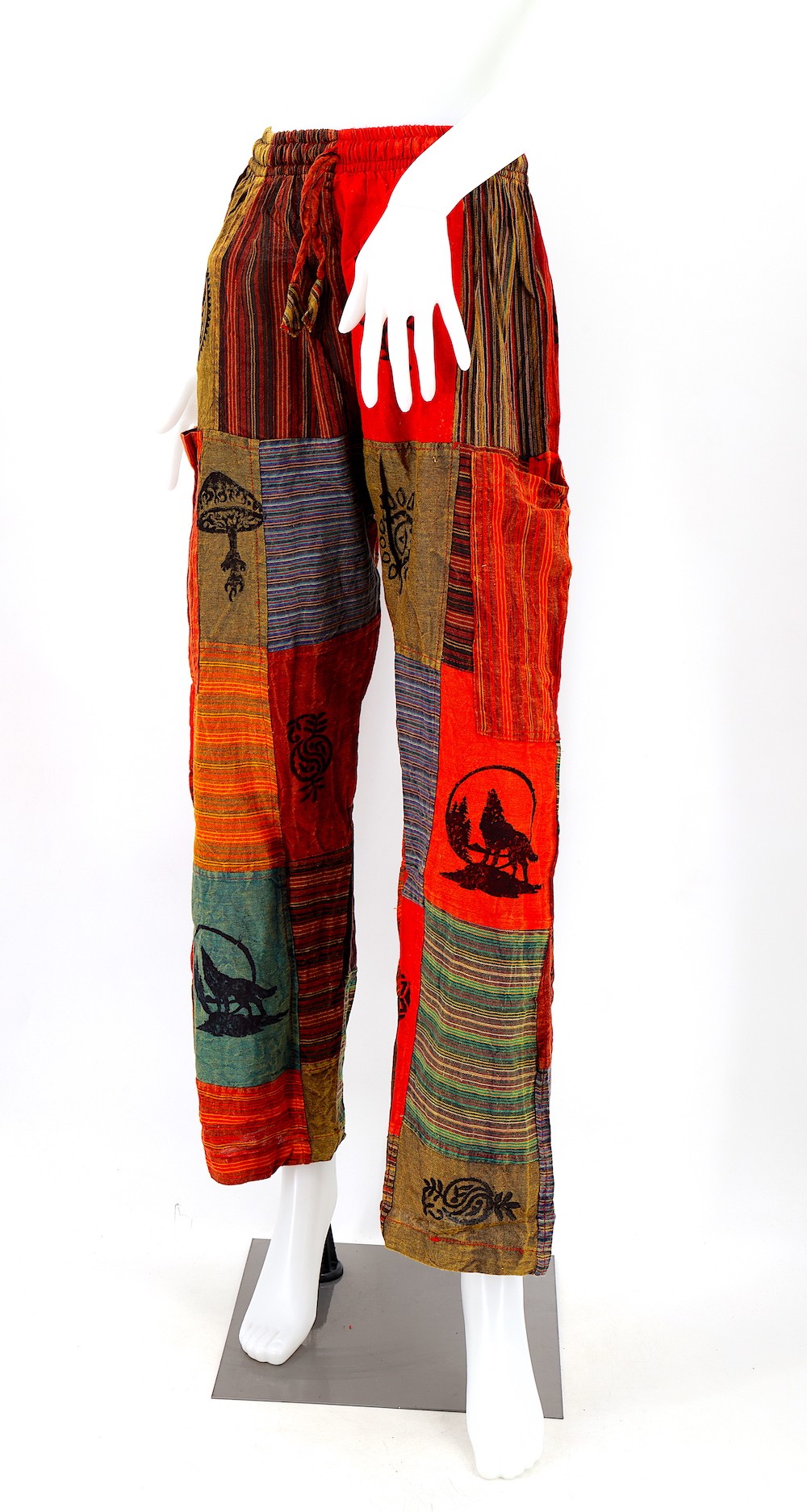 Every clothing item is meticulously handmade, reflecting the care and consideration put into their creation, resulting in unmatched quality. Because our products are handmade, the patchwork colors and patterns on each pair of trousers may vary, making each one unique. The provided image serves as a general representation of the product's appearance.