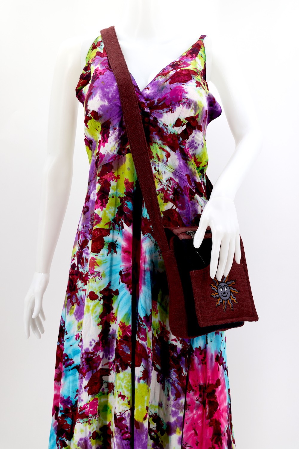 The beautiful Hand-Woven Cotton Travel bag is hand made in Nepal with pure 100% organic Himalaya Cotton. This modern Mushroom Embroidery Cotton passport bag is supremely versatile and fashionable. This bag features are it has two compartments with zippers and it has adjustable strap with outside two pockets in the front and in the main pocket above with a zipper. It is a fair trade made product.