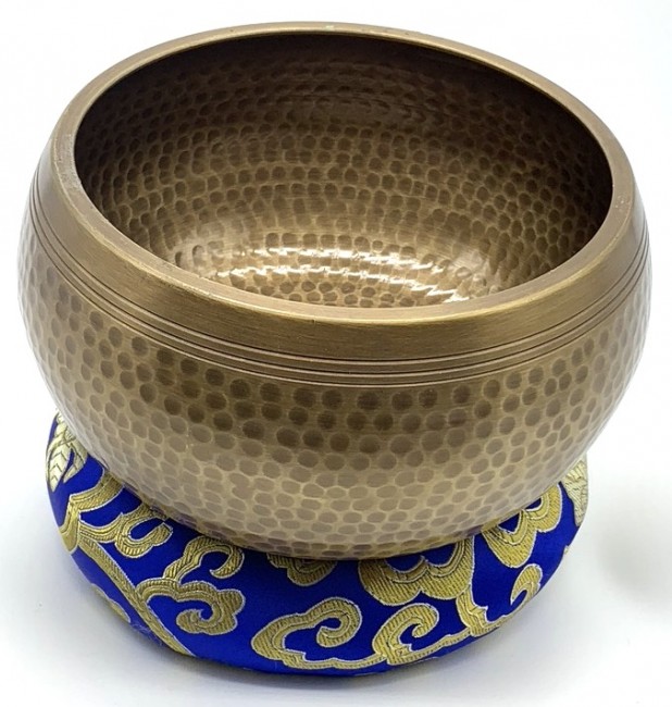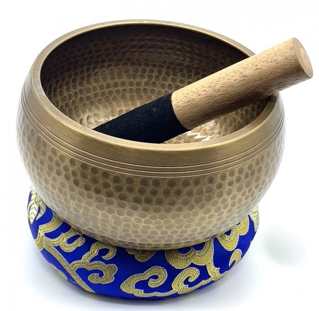 AUTHENTIC HAND HAMMERED (BEATEN) TIBETAN SINGING BOWL SET — This high-quality handcrafted meditation bowl set includes a wooden striker and hand sewn cushion. It is hand hammered in the Himalayan Foothills by Nepalese artisans to be as unique as you are and to create an ambience for emotional calming & healing.