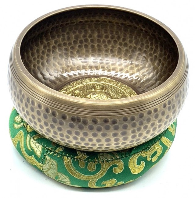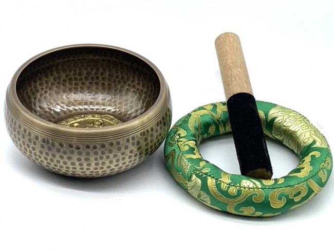 AUTHENTIC HAND HAMMERED (BEATEN) TIBETAN SINGING BOWL SET — This high-quality handcrafted meditation bowl set includes a wooden striker and hand sewn cushion. It is hand hammered in the Himalayan Foothills by Nepalese artisans to be as unique as you are and to create an ambience for emotional calming & healing.