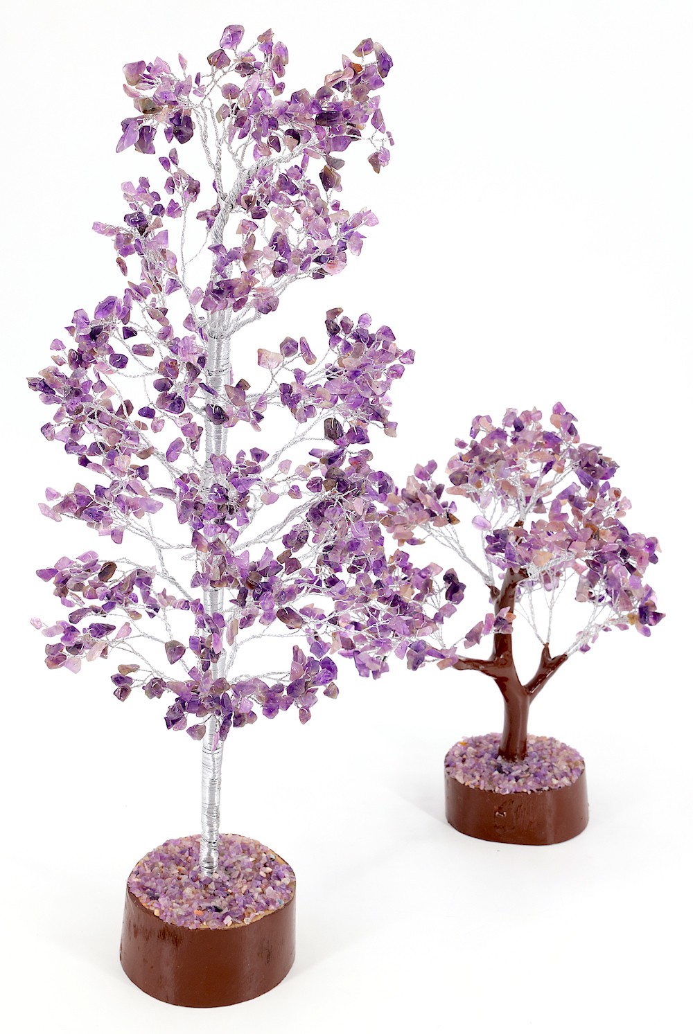 Invite wealth and positivity into your space with this stunning Amethyst and Clear Quartz Gem Tree. Handcrafted with care in Nepal, this Healing Tree of Life is a remarkable Chakra Energy Sculpture that radiates serenity and balance. Expertly crafted by Nepalese artisans, each tree is a testament to traditional craftsmanship and attention to detail. You can tailor the tree's appearance to suit your environment by gently bending the branches to your desired shape. This delicate piece should be handled with care to preserve its intricate design and crystal integrity. While slight variations in height and width may occur, you can expect an accurate and beautifully made item. The tree's colors may differ slightly due to its handmade nature and varying light conditions, ensuring each piece is uniquely beautiful. This Amethyst and Clear Quartz Gem Tree is perfect for anyone looking to infuse their surroundings with positive energy and a touch of elegance.