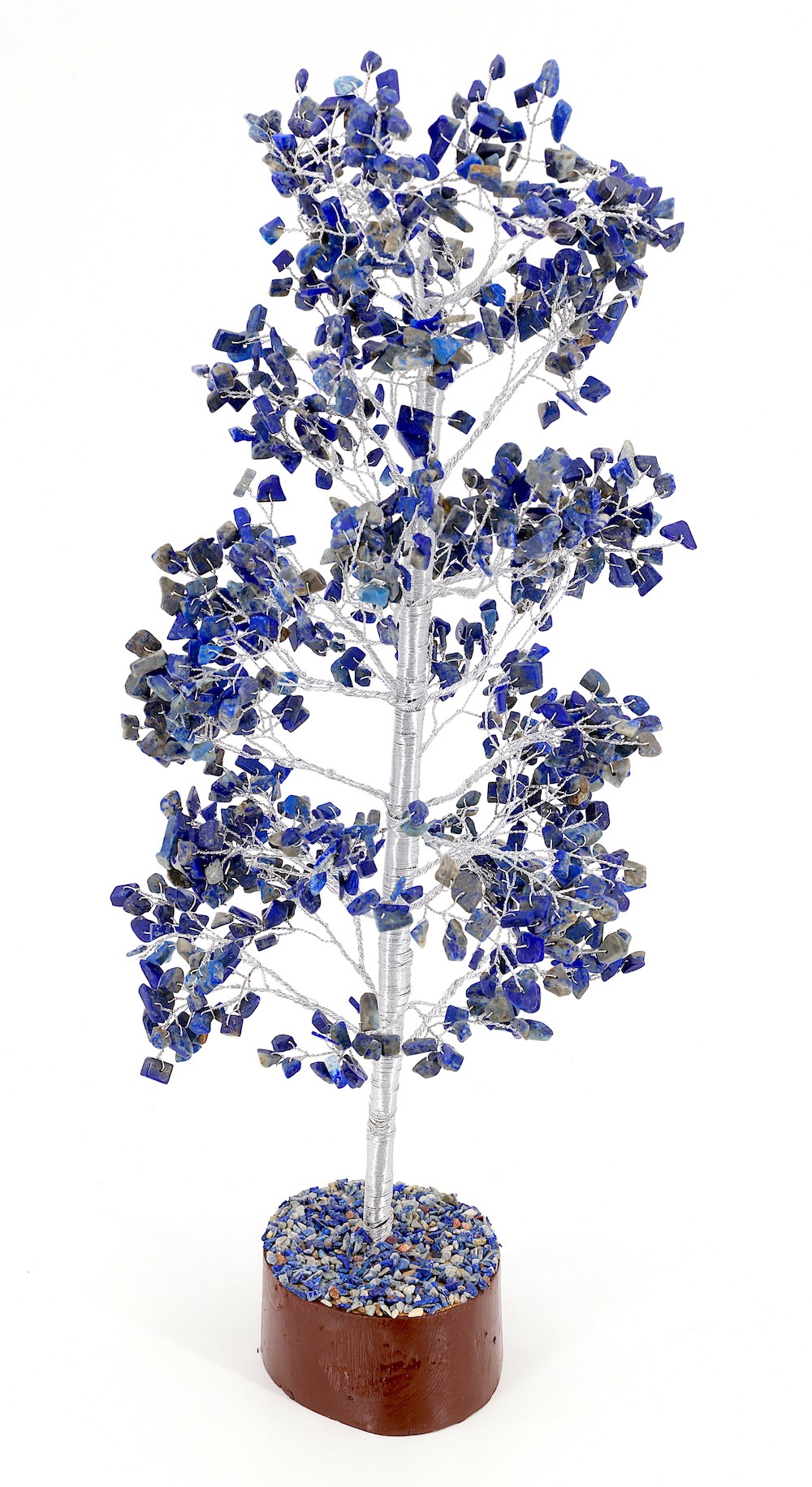 Experience the wisdom and serenity of Lapis Lazuli with this stunning Spiritual Tree of Life. Handcrafted in Nepal, this Healing Tree of Life with Crystals is a Chakra Energy Sculpture that enhances spiritual growth and clarity. Each tree is a unique piece, meticulously crafted by skilled Nepalese artisans to ensure high quality and individuality. You can adjust the branches to your liking, personalizing the tree to fit your space perfectly. Due to its fragile nature, it should be handled with care to maintain its delicate design. The height and width might vary slightly by a few centimeters, but you can expect an accurately crafted and beautiful product. The handmade nature and varying lighting conditions may cause slight color variations, making each piece unique. This Lapis Lazuli Spiritual Tree is ideal for those seeking to enhance their spiritual journey and bring wisdom into their home or office.