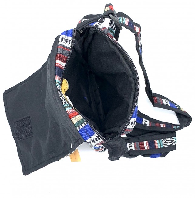 Double Stitched with the highest quality Handwoven Gheri Cotton and double zipper with fully adjustable shoulder straps 11”-24-inch one size fits all. Dimensions: 8" x 7" x 2" Inch and 20.32 x 17.78 x 5