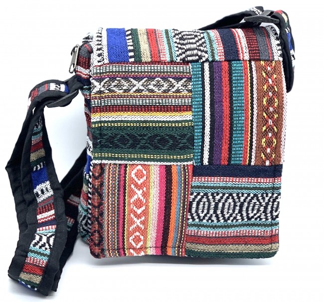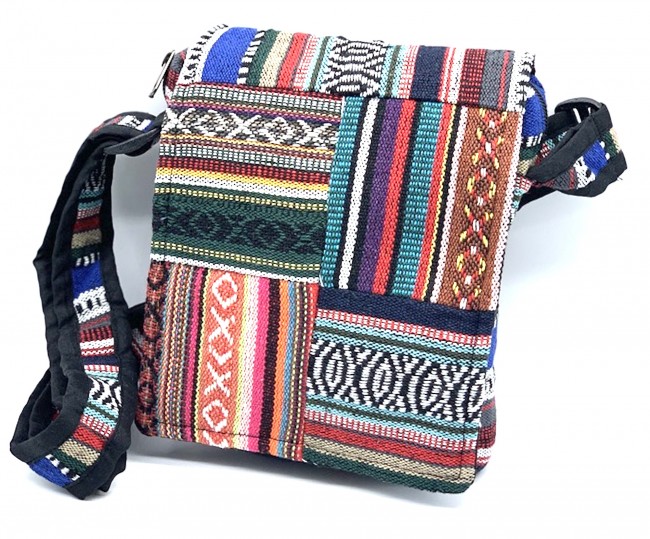 Pure 100% Handwoven Gheri Cotton passport bag is handmade in Nepal. This passport bag has 3 compartment with zippers, in the main compartment it has secret pocket at 8.5-6.5 inches with zippers and it has an adjustable strap at 11-24 inches. Additionally it has 2 pockets the front 6" inch, It is supremely versatile and fashionable. This bag is suitable for carrying passport, mobile phone and mini iPad. It is fair trade product. Could be hand washed or machine washed in cold water.