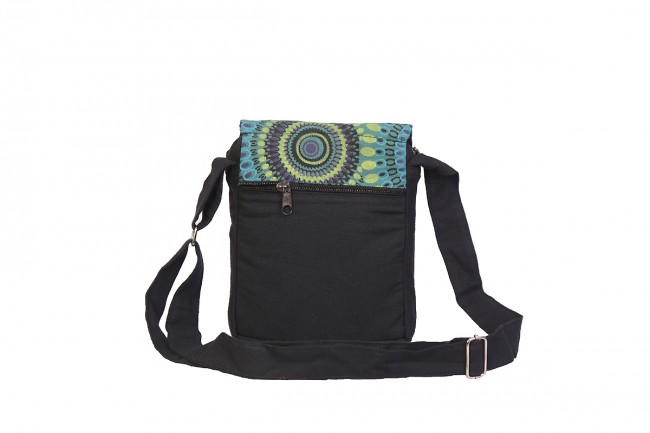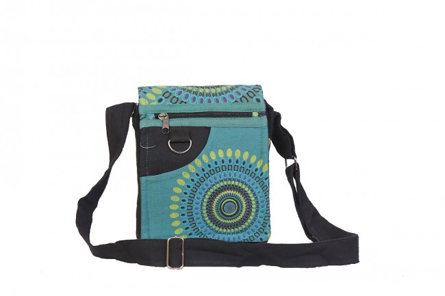 Pure 100% cotton passport bag is handmade in Nepal with great Mandala print. This passport bag has 3 compartment with zippers, in the main compartment it has secret pocket with zippers and it has adjustable strap. It is supremely versatile and fashionable. This bag is suitable for carrying passport, mobile phone and mini iPad. It is fair trade product.