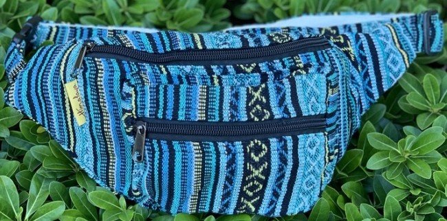 100% pure Hand woven Gheri Cotton Multi Torquoised Color money belt (Fanny Pack) handmade in Nepal. This product can be use by both men and women west or can be worn lower on the hips. This bag has charming features, it is practical and versatile because it can be belt bag/fanny pack /shoulder bag, it has 3 pockets with zippers, the belt is adjustable 29 - 45 inch which can make shorter and longer as well. It is fair trade product. Size: 29 x14x10 cm (12.5x5.5x4 inches)