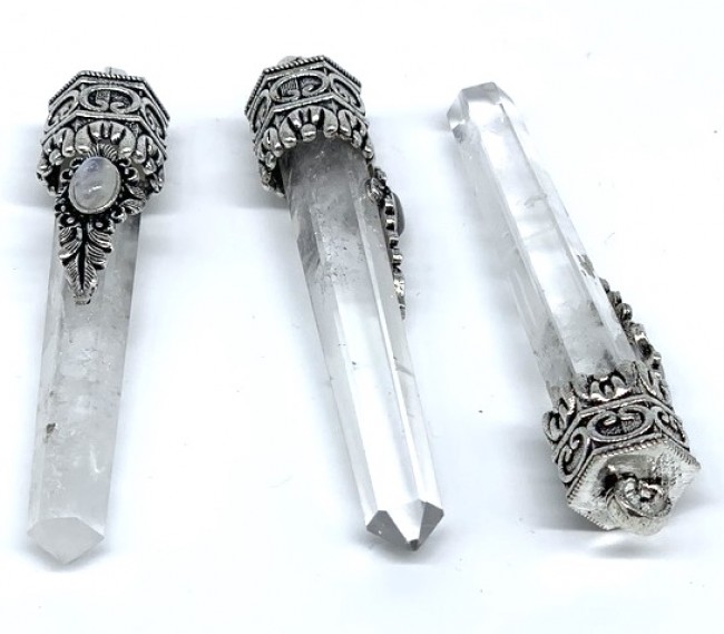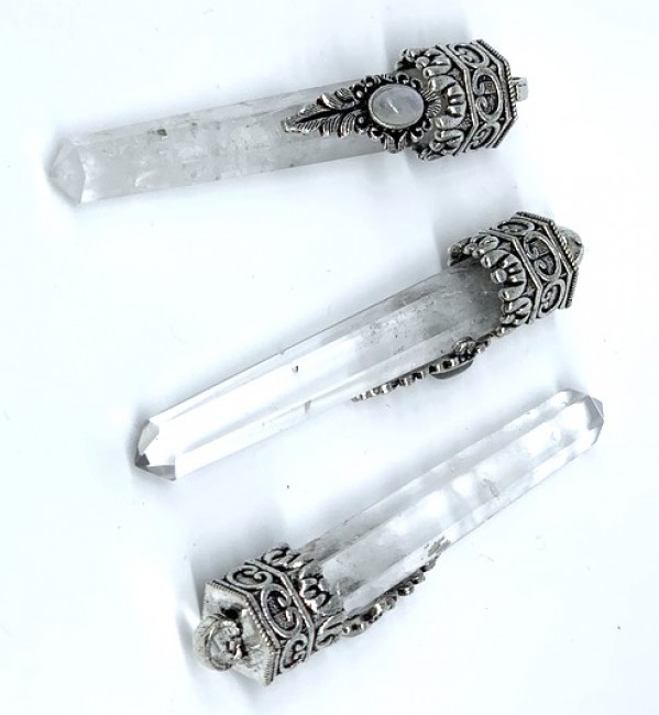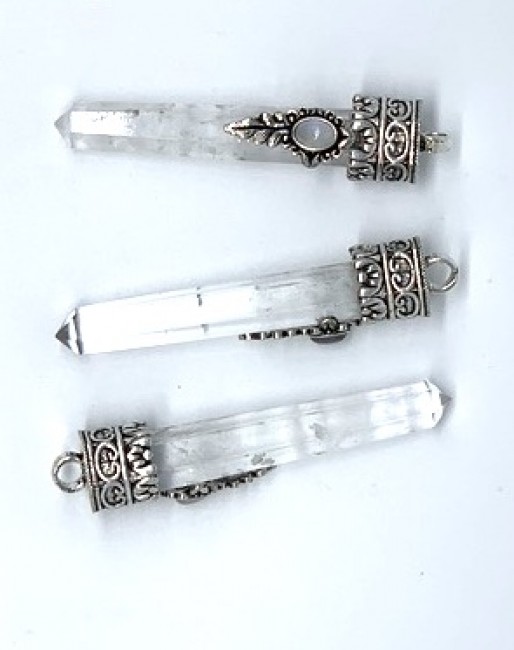 STONE CRYSTAL PENDENT WITH HAND CARVED DESIGN.