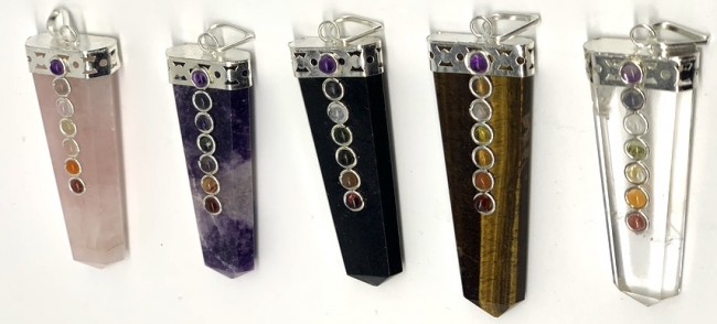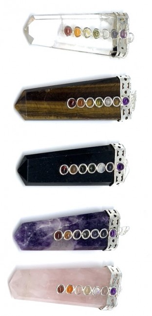 SEVEN CHAKRA STONE HAND CARVED PENDENT.