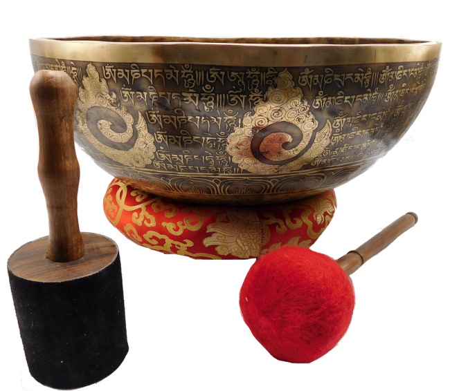 The best way to play the bowl is to tap it with a mallet. Concentrating on the bowl, especially the pulses of sound as they become quieter and quieter, is an excellent way to bring the mind into focus.