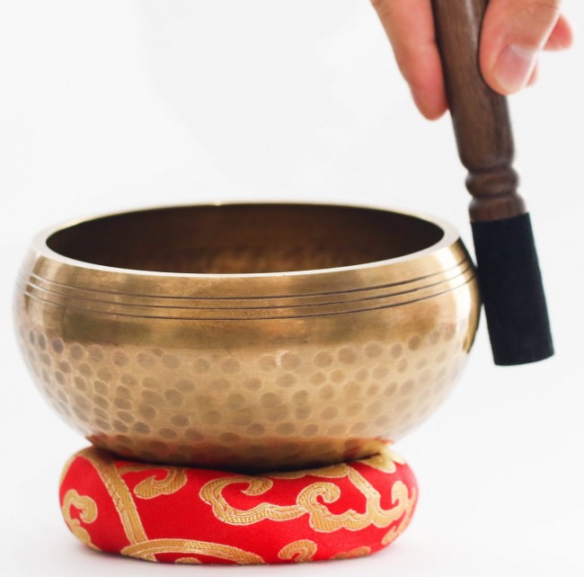 • AUTHENTIC HAND HAMMERED (BEATEN) TIBETAN SINGING BOWL SET — This high-quality handcrafted meditation bowl set includes a wooden striker and hand sewn cushion. It is hand hammered in the Himalayan Foothills by Nepalese artisans to be as unique as you are and to create an ambience for emotional calming & healing.