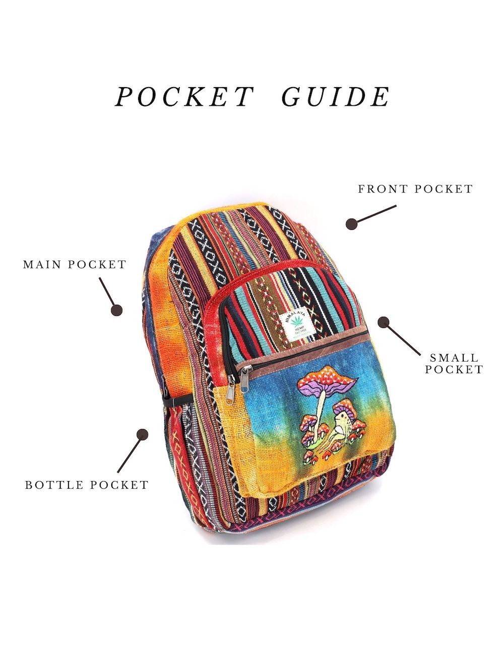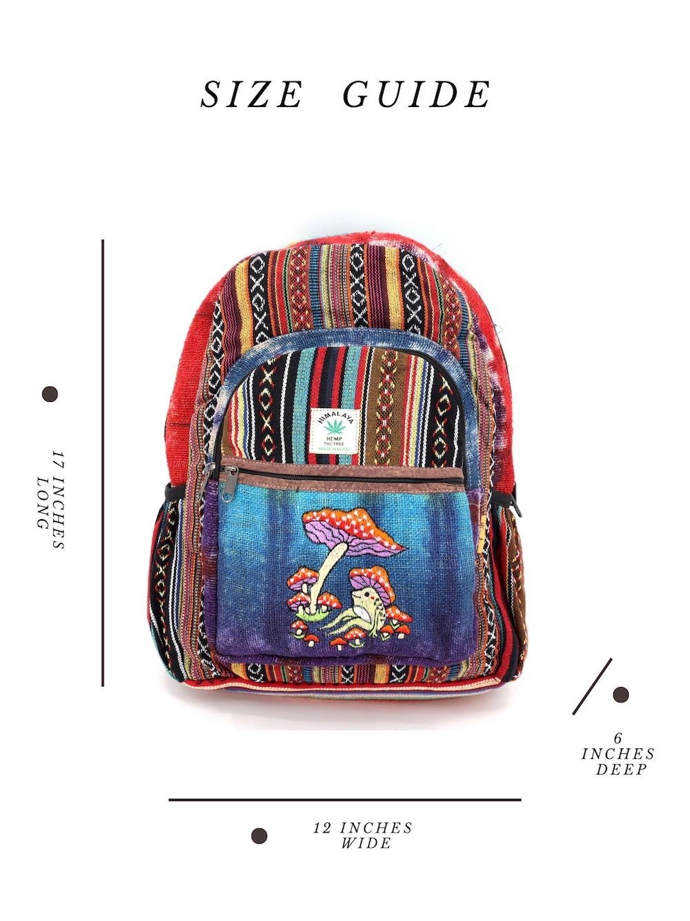 At Himalaya Handmade we are known for creating the modern hemp backpacks that are now available in profusion of design and colors. Our Mini backpack with multicolor Aztec pattern is made from eco-friendly natural hand-woven hemp and cotton fabric and it is beautifully handcrafted in Nepal, they are high quality and this backpack has everything you need. You will not find higher quality anywhere else. All of our bags are sourced from the mountainous regions of Nepal and are all 100% Handmade. This backpack features are it has a unique multi colored pocket. Handcrafted this Backpack Includes, laptop compartment – fits any type and size, 4 separate zippered compartments with 2 pockets, 2 water bottle holders, extremely strong construction, strong original two metal zippers on main compartment, soft padded straps and made from 100% Hemp, the entire bag is extremely strong but also breathable. Color of these bag will not be exact because arrangement of the pattern and these bags are handmade so in color can be slightly different. Pictures color are just example. Every bag is handmade and therefore unique.