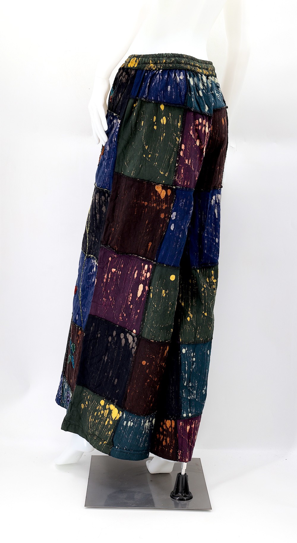 Every clothing item is meticulously handmade, reflecting the care and consideration put into their creation, resulting in unmatched quality. Because our products are handmade, the patchwork colors and patterns on each pair of trousers may vary, making each one unique. The provided image serves as a general representation of the product's appearance.