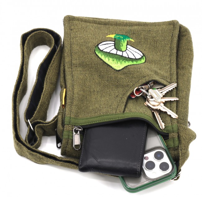 This beautiful Mushroom embroidered 100% pure cotton passport bags are handmade in Nepal. This beautiful passport bag features are it has one pocket in the front & one pocket in the back, it has two compartments, a large main compartment with zippered pocket inside and it has a long adjustable strap 11”-24” inch which you can clutch the bag across your body. This cotton passport bag is extraordinary and fashionable. This passport bag is suitable for carrying document, Mini Tablet, Mobile Phone and Purses.