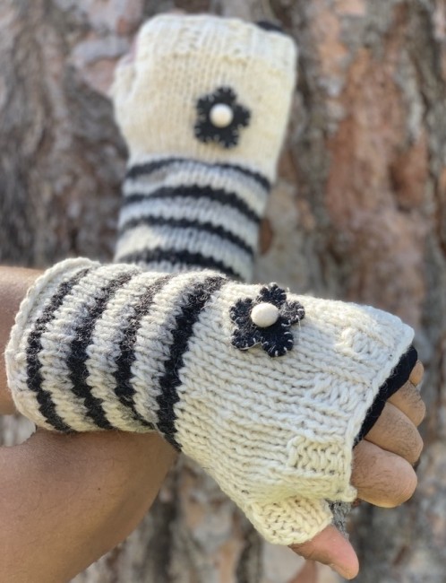 Woolen hand warmers are made by 100% finest quality of New Zealand wool and inside lined with the softest and thickest polar fleece which gives you cozy feel. They are hand knitted and beautifully crafted by our experienced woman in Nepal with unique design. This stylish arm warmer will surely keep you warm. These woolen hand warmers are itch – free.