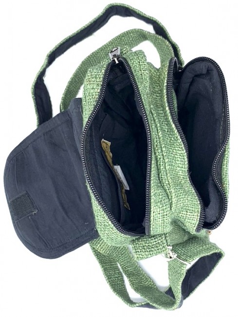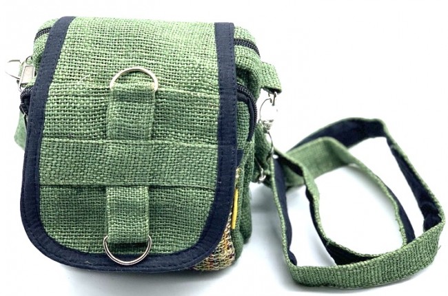 The beautiful hemp Travel bag is hand made in Nepal with pure 100% organic core hemp. This modern hemp passport bag is supremely versatile and fashionable. This bag features are it has two compartments with zippers and it has adjustable strap with outside two pockets in the front and in the main pocket above with a zipper. It is fair trade product.